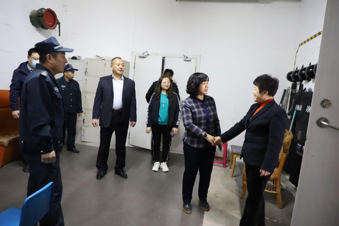 ▲在長(zhǎng)田物業(yè)鳳凰城項(xiàng)目部,常務(wù)副總張玲和濟(jì)北街道黨工委委員田淑云、新元社區(qū)書記李晨溝通交流