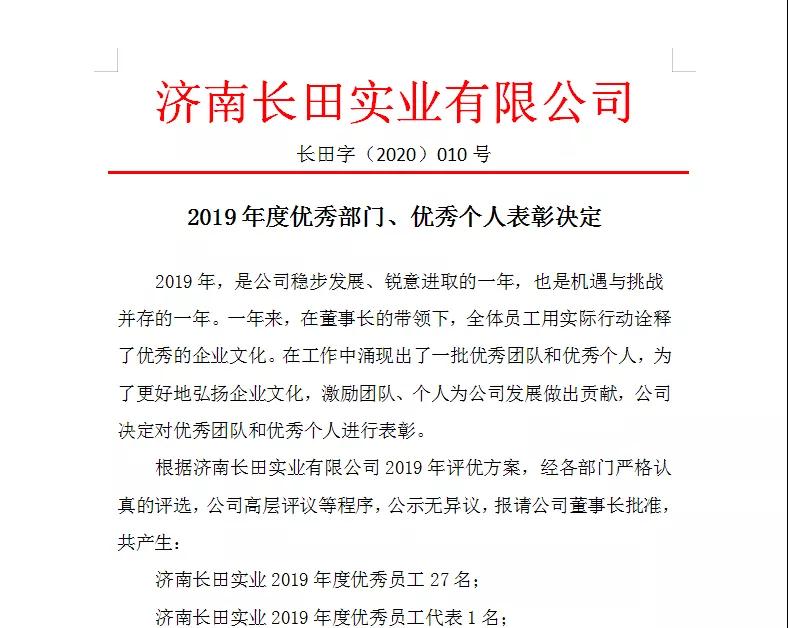 回望2019年,在不斷前行的道路上,長田實業(yè)這棟摩天大廈的宏偉離不開每一位長田家人背后的添磚加瓦。在璀璨的舞臺上,在見證榮耀的光輝時刻,常務(wù)副總張玲鄭重宣讀《2019年度優(yōu)秀部門、優(yōu)秀個人表彰決定》,以此表彰先進(jìn),致敬長田人!