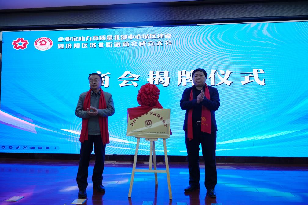 呼廷貴主席、王云剛書記為濟北街道商會揭牌