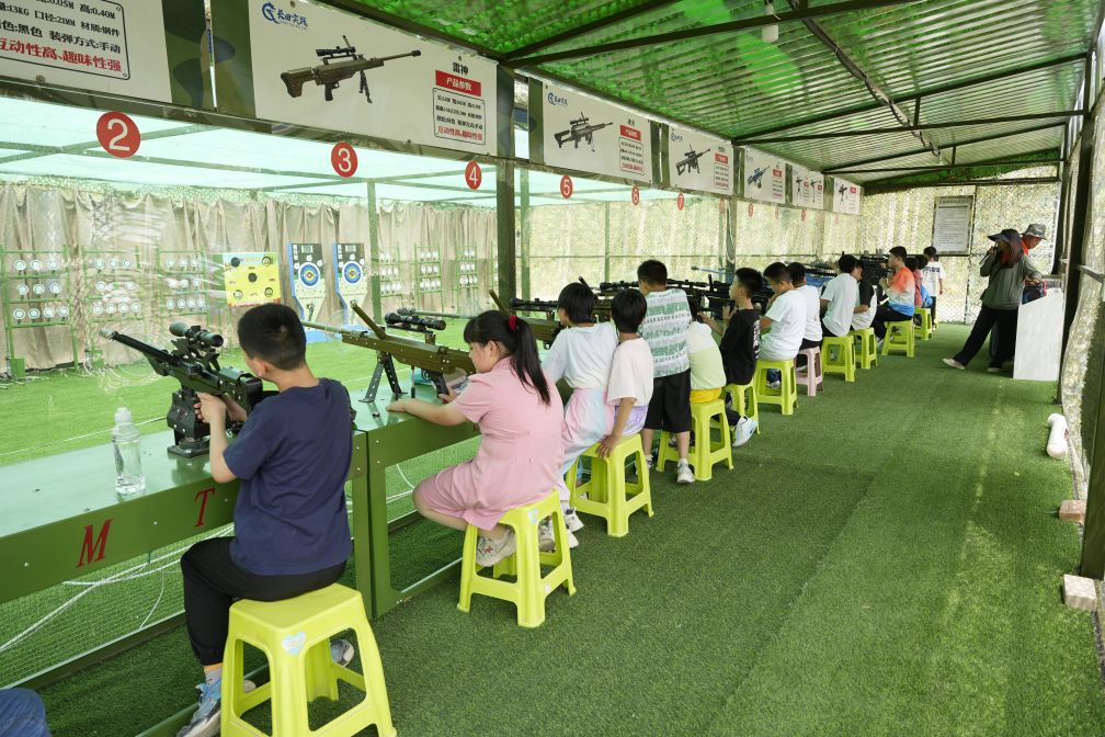 君子無(wú)所爭(zhēng),必也射乎。長(zhǎng)田實(shí)踐教育基地射箭場(chǎng)選用“國(guó)際射箭聯(lián)合會(huì)”官方鉆石合作伙伴三利達(dá)專(zhuān)業(yè)品牌器具,在射箭場(chǎng)體驗(yàn)傳統(tǒng)君子六藝之射術(shù),在“砰砰砰”聲中體驗(yàn)暢玩的樂(lè)趣,競(jìng)技爭(zhēng)先在歡樂(lè)中成長(zhǎng)。長(zhǎng)田實(shí)踐軍事體驗(yàn)基地的仿真金屬氣炮槍?zhuān)尯⒆觽兞憔嚯x感受到射擊所帶來(lái)的無(wú)限魅力,屏息凝視、瞄準(zhǔn)目標(biāo),競(jìng)技爭(zhēng)先,在歡樂(lè)中度過(guò)美好時(shí)光!