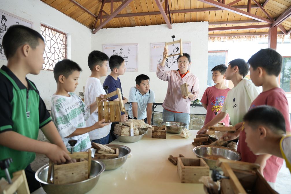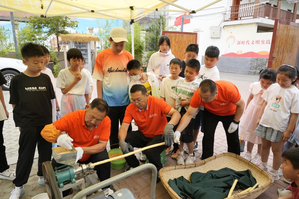 領(lǐng)略完黑陶的魅力,一行人又來(lái)到了豆腐坊。剛一踏進(jìn)大門(mén),一陣陣香醇的豆類(lèi)氣息撲面而來(lái)。在這里,孩子們了解了與磨盤(pán)、碾盤(pán)相關(guān)的歷史文化,現(xiàn)場(chǎng)體驗(yàn)石磨磨豆子,過(guò)濾豆渣,品嘗新鮮的豆?jié){,跟著老師傅親手制作一塊屬于自己的豆腐,感受通過(guò)勞動(dòng)獲得食物的樂(lè)趣。