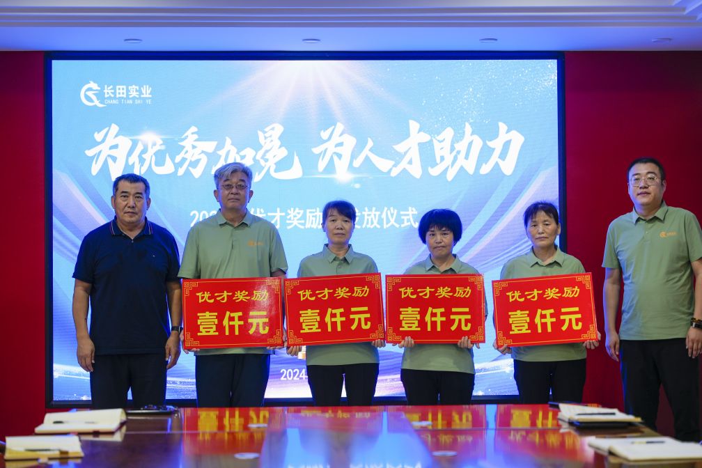 8月26日,長(zhǎng)田實(shí)業(yè)開展了2024年優(yōu)才獎(jiǎng)勵(lì)金發(fā)放儀式。今年,是公司連續(xù)第七年舉辦優(yōu)才獎(jiǎng)勵(lì)金的頒發(fā)儀式,共有四名員工獲得該獎(jiǎng)勵(lì),其中一人子女考取了本科,三人子女考取了研究生;長(zhǎng)田實(shí)業(yè)工會(huì)主席、副總經(jīng)理成峻志為他們頒發(fā)優(yōu)才獎(jiǎng)勵(lì)金。隨后黨支部書記、董事長(zhǎng)張勇與大家共同合影留念。