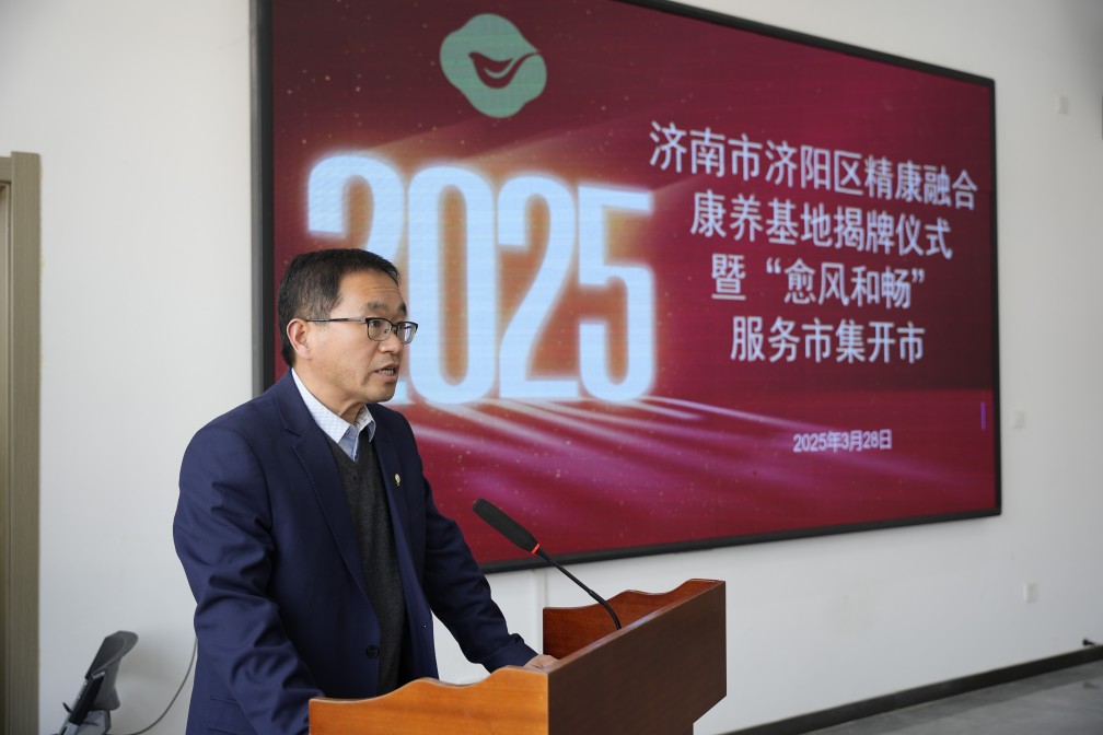 濟(jì)陽區(qū)政府黨組成員、副區(qū)長吳濤發(fā)表致辭。他指出,精神健康是衡量社會(huì)文明進(jìn)步的重要標(biāo)尺,也是實(shí)現(xiàn)共同富裕的必然要求。近年來,濟(jì)陽區(qū)高度重視精康融合工作,基本構(gòu)建起“醫(yī)院—社區(qū)—家庭”三級(jí)聯(lián)動(dòng)網(wǎng)絡(luò)。創(chuàng)新提出“醫(yī)療+康養(yǎng)+人文”三位一體發(fā)展理念,致力于讓每位康復(fù)者都能在包容、平等的環(huán)境中,暢享生命歡喜?!坝L(fēng)和暢”康養(yǎng)基地,正是“場景化賦能”服務(wù)理念的生動(dòng)實(shí)踐。社會(huì)化協(xié)同是濟(jì)陽區(qū)康復(fù)服務(wù)的一大亮點(diǎn),在與濟(jì)南長田實(shí)踐教育基地的深度合作中,全面助力康復(fù)者實(shí)現(xiàn)從“輸血”到“造血”的轉(zhuǎn)變。特別是基地首創(chuàng)的“家庭支持中心”,將為家屬提供心理疏導(dǎo)、照護(hù)技能培訓(xùn)及喘息服務(wù)。精神健康事業(yè)沒有“完成時(shí)”,只有“進(jìn)行時(shí)”。下一步,濟(jì)陽區(qū)委區(qū)政府將重點(diǎn)在擴(kuò)大服務(wù)覆蓋、深化數(shù)字賦能、強(qiáng)化社會(huì)動(dòng)員等方面形成關(guān)愛合力。