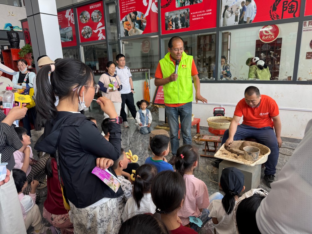 龍格黑陶藝術(shù)研究院內(nèi),孩子們的目光被古樸的黑陶器物深深吸引。省級非物質(zhì)文化遺產(chǎn)項目代表性傳承人徐慶增老師現(xiàn)場演示拉坯、雕刻技藝,手中的陶土仿佛被賦予了生命,在指尖的舞動下逐漸成型。